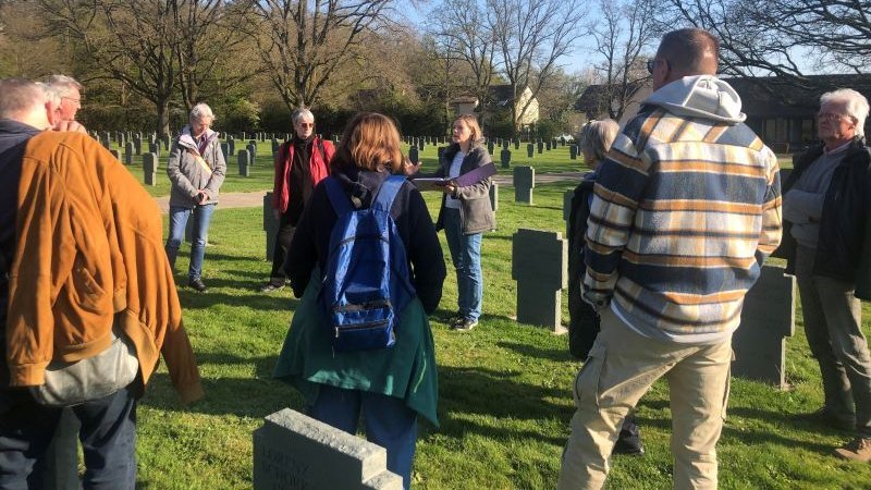 Nach einem Mittagsimbiss in Niederbronn-les-Bains referiert Joëlle Winter, die Leiterin der JBS über das Bildungsangebot in der internationalen Begegnungsstätte Albert Schweitzer. Sie berichtet anhand einiger persönlicher Schicksale von Menschen aus dem Elsass über die Zeit der Auseinandersetzungen zwischen Deutschland und Frankreich in der Region. Im Anschluss entwickelt sich eine lebhafte Diskussion zu den verschiedenen Aspekten ihres Berichts, was u.a. zur Folge hat, dass nach der Führung über die Kriegsgräberstätte nur wenig Zeit bleibt, um sich auch noch die Ausstellung am Eingang des Friedhofs länger anzusehen.