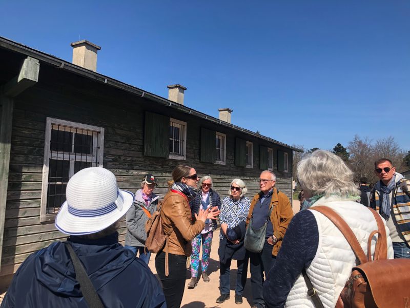 Im Anschluss fährt die Gruppe zur KZ-Gedenkstätte Natzweiler-Struthof, wo die Referentin die Bedeutung und Funktion des Lagers beschreibt. Die Teilnehmenden sind berührt von dem Kontrast zwischen der zuvor erlebten, heiteren Atmosphäre auf dem Odilienberg und der grausamen Geschichte des Lagers: ein Appellplatz mit Galgen und Strick; eine Anlage in Terrassenform angelegt, mit dem Ziel, die Inhaftierten durch die Arbeit im Steinbruch noch mehr zu schwächen als sie es sowieso schon waren, die Mangelernährung, die unhaltbaren hygienischen Bedingungen und die Schikanen, denen sich die Häftlinge ständig ausgesetzt sahen.
